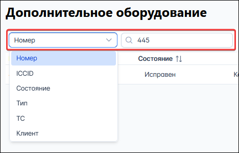 Для поиска оборудования в списке выберите поле для поиска и введите значение в поле Поиск: